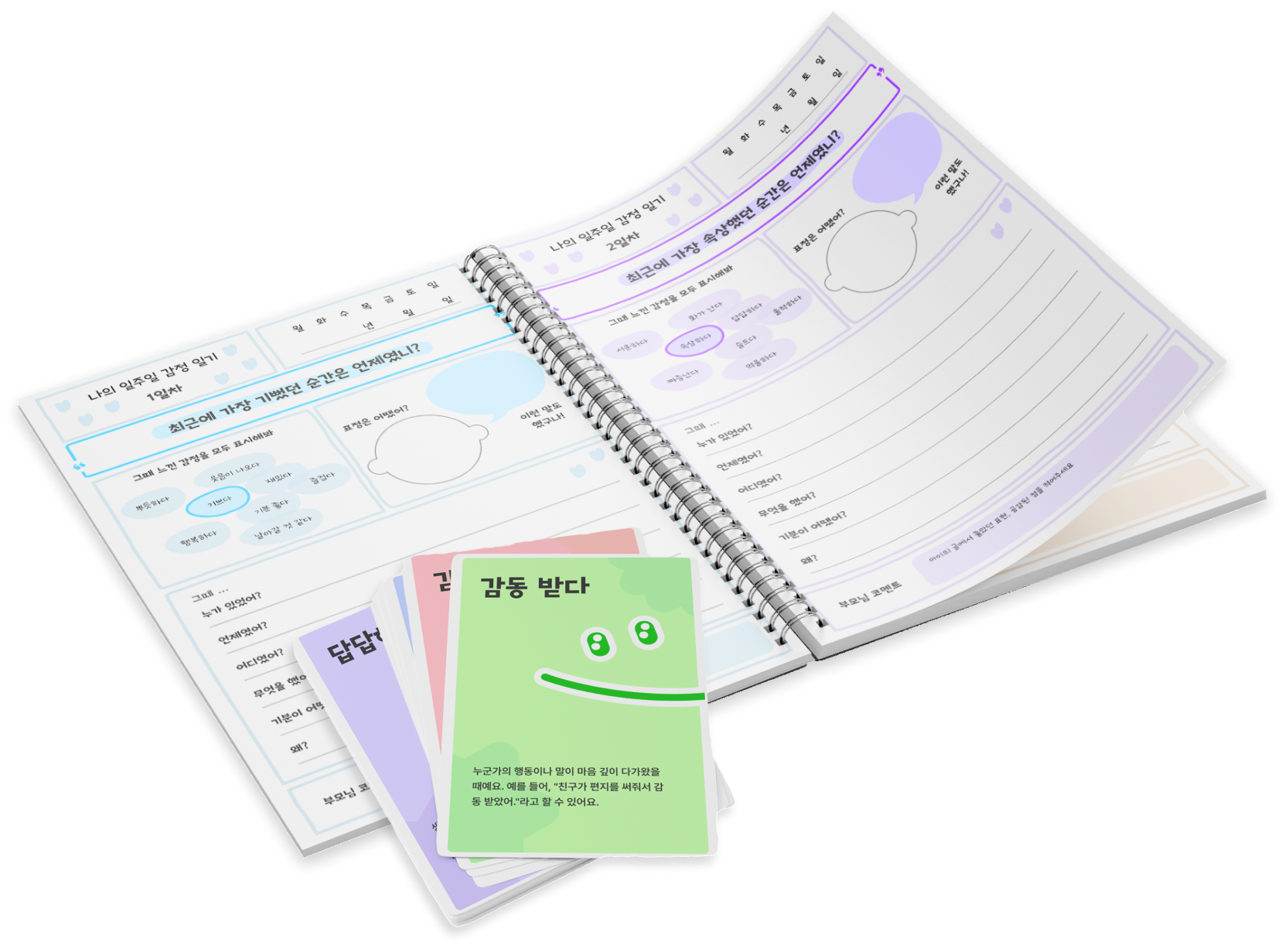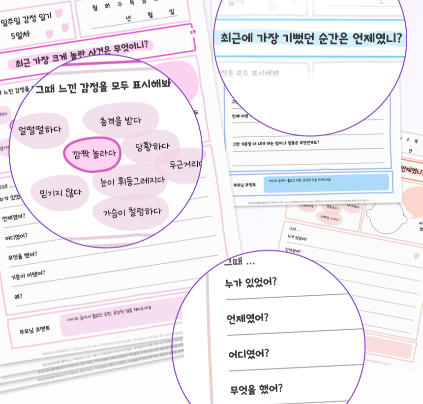 저희가 만든 감정 일기 연습지를 참고해보셔도 좋아요.