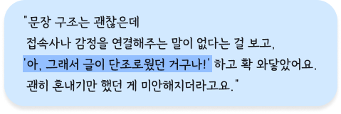 즉, ‘기본 구조는 좋지만 문장 사이 연결이 부족’한 상태로 진단된 거죠.